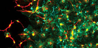 Brain cells, wrongly, are often presumed to be static- fixed in time and place and once mature, unable to renew themselves. In Static Motion, the creativity, mobility and agility of the cell is revealed through serial imagery illustrating the dynamism of the cell.
